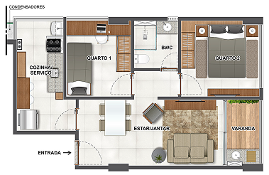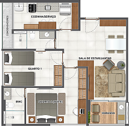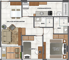 Planta apto 101 - 1001O Plaza Haus une praticidade e lazer em um projeto inteligente,